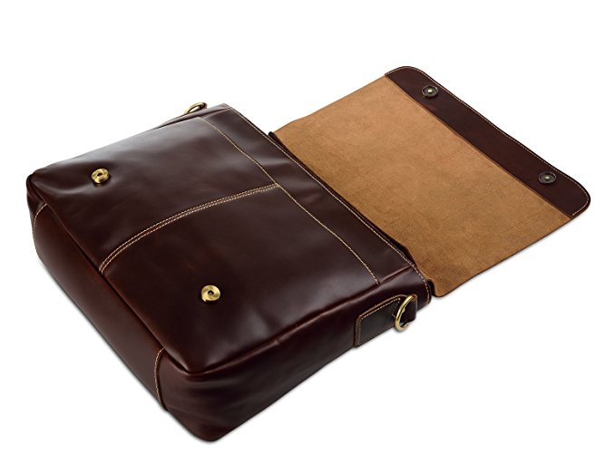 Brašna Messenger je vyrobena z pravé kůže o síle 2,5 až 3 mm. Zapínání je na dva magnety. Uvnitř je brašna vybavena přepážkou, dvěma kapsami a úchytkou na tužky. Šířka popruhu přes rameno je 30 mm.